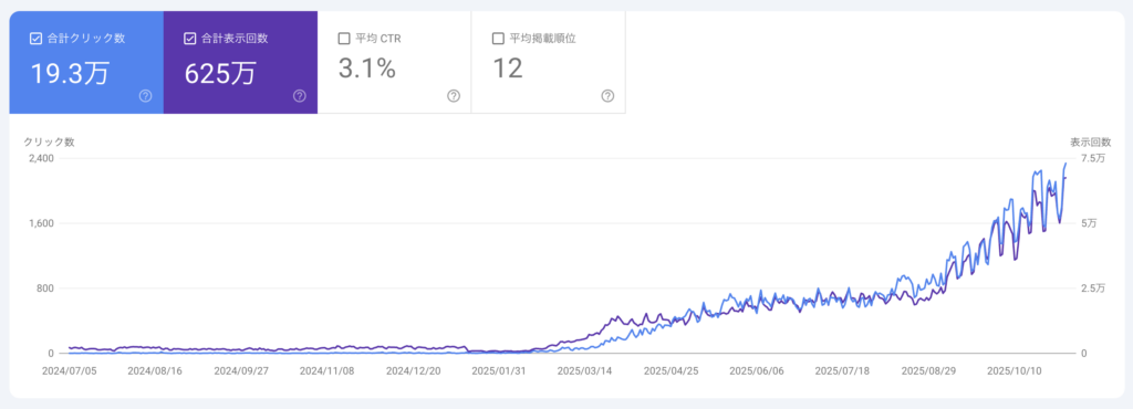 - Google検索からの自然流入数も右肩上がり(半年で約2.5倍)