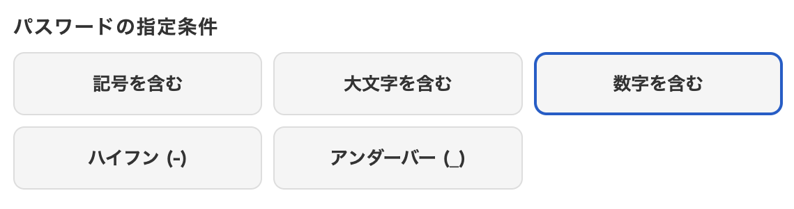 パスワードの生成に必要な「指定条件」を選択形式で選ぶことができます。