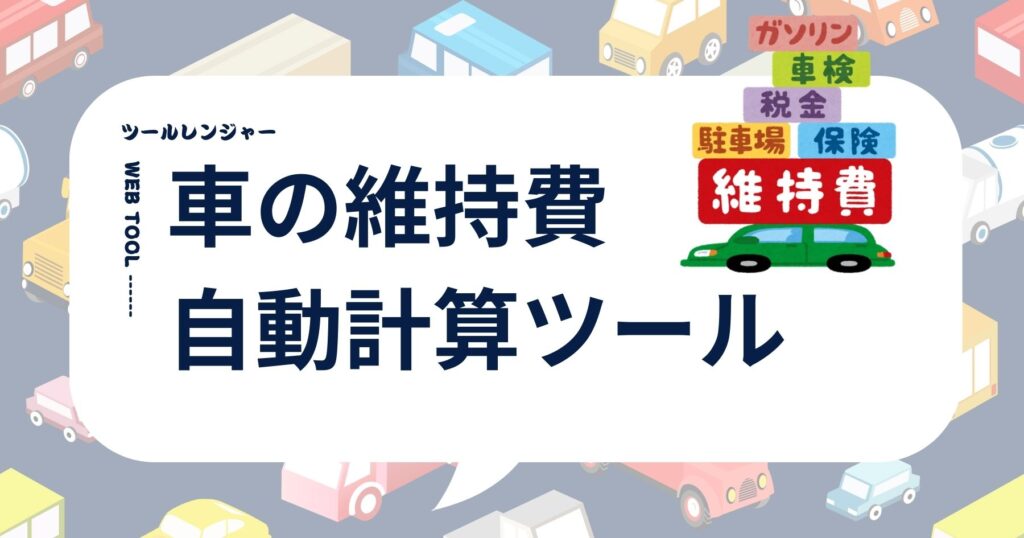 WEB TOOL 車の維持費自動計算ツール 「車の維持費自動計算ツール」は、車の年間維持費を、駐車場代・燃料費・保険・税金・車検・メンテナンス・ローンを含めて自動計算できます。購入前の検討や家計シミュレーションに役立つ便利なツールです。 車の維持費... -