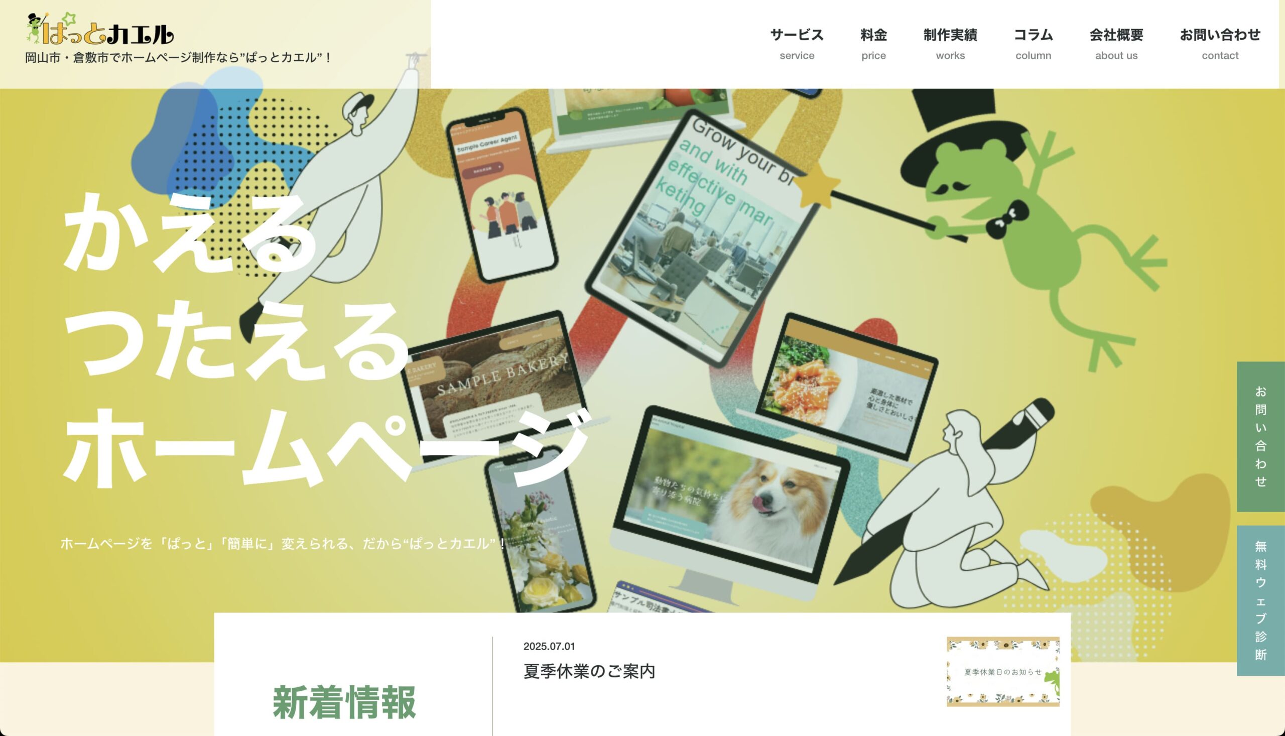 ぱっとカエル(運営:ネットリンクス株式会社)は、岡山県岡山市北区表町に本社を構えるホームページ制作サービスです。
