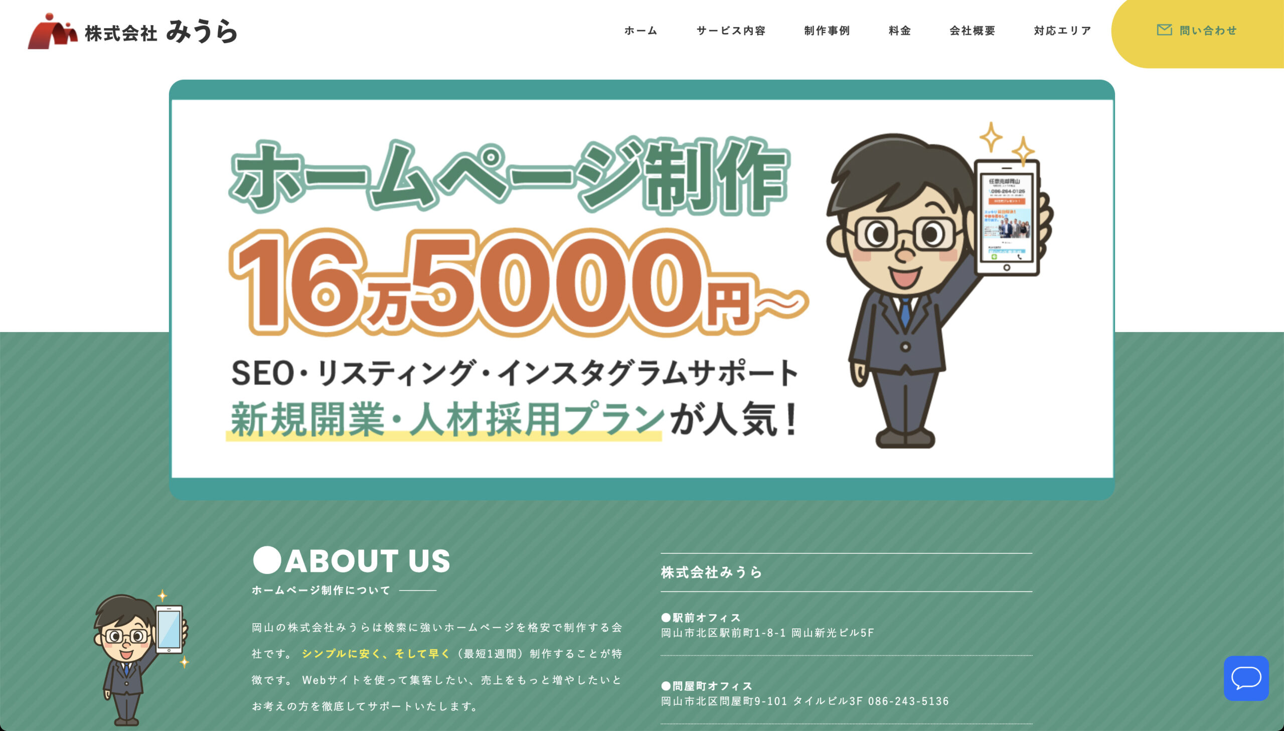 株式会社みうらは、岡山県岡山市に拠点を置くホームページ制作会社です。